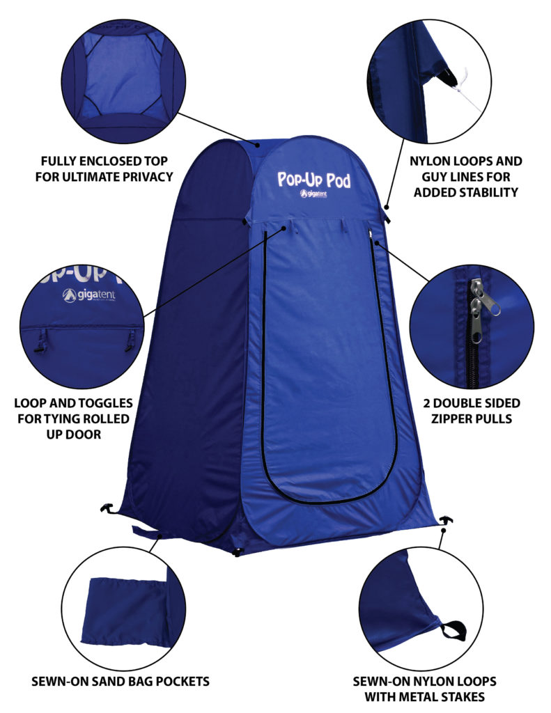 - INNOVATIVE POP-UP TENT: The Gigatent 6 foot instant privacy tent offers you instant private space for camping bathroom & potty use, outdoor showers, changing clothes, for use as a soft rain shelter and more. And without any hassles of tedious installation – a must-have travel accessory for your next adventure!