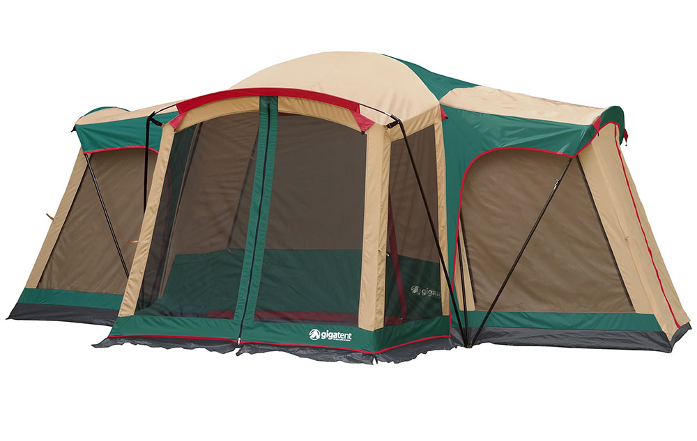 The Giga Tent Kinsman Mountain Family Tent is a huge 3 room tent with an attached 29.12 sq. ft. screen room.